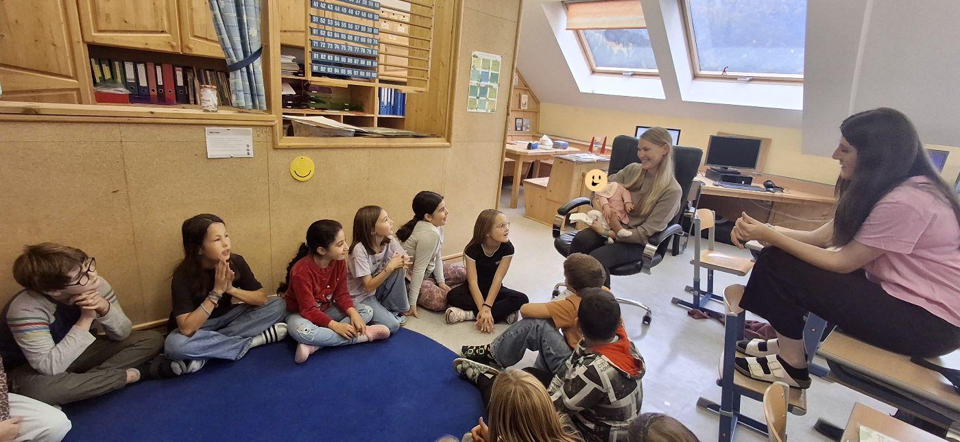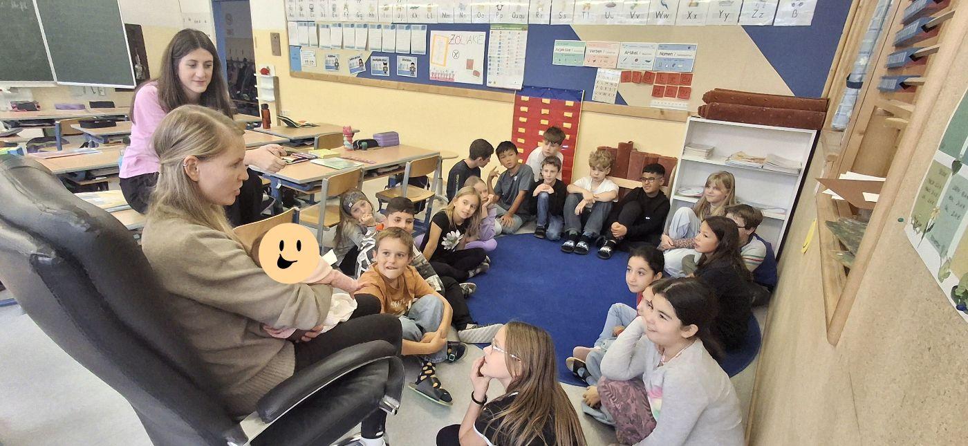 Unsere Lehrerin Sabrina, die uns in der 3. Klasse unterrichtete, besuchte uns wie versprochen mit ihrem süßen Baby Anna! Beide strahlten glücklich um die Wette und wir freuen uns mit ihnen! Anna schaute sich genau um, wo sie da gelandet war und wir konnten kaum unsere Augen von ihr wenden. Lehrerin Sabrina erzählte uns vom Mama sein und erkundigte sich, wie es uns in der 4. Klasse geht. Nachdem unsere Fragen geduldig von ihr beantwortet wurden, verabschiedeten sie sich noch in die anderen Klassen. Sie wollten die Besuche schaffen, bevor Anna hungrig wird. Weiterhin alles Gute für euch. Wir haben uns sehr über euren Besuch gefreut und kommt uns gerne jederzeit wieder besuchen!