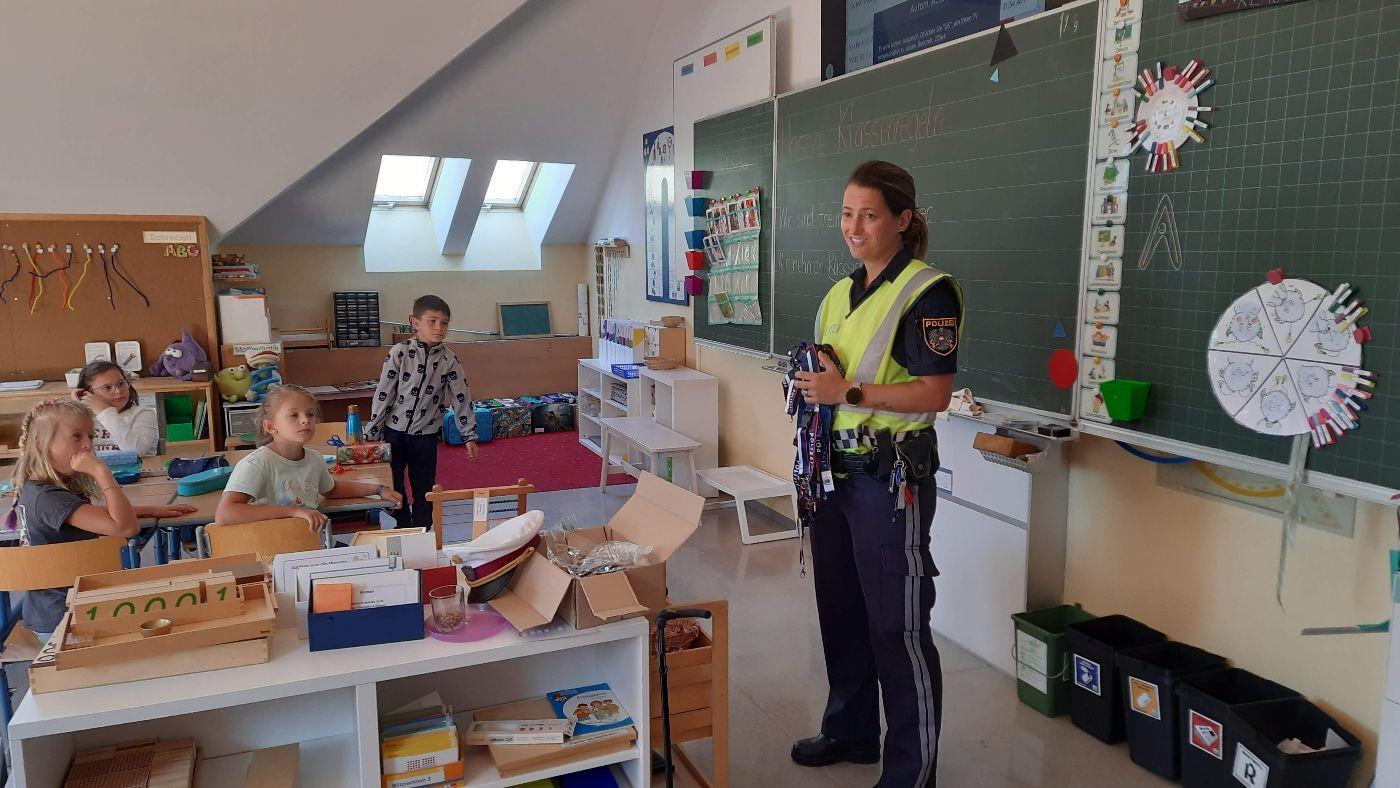 Was uns aufgefallen ist? Nicht alle Autos blieben vor dem Schutzweg stehen, obwohl die Polizistin dabei war und wir eigentlich schon von weitem sichtbar waren. Die Kinder wurden speziell auf diese Gefahr hingewiesen. Stehen bleiben, links-rechts-links schauen, sich immer vergewissern, das auf beiden Fahrbahnen die Autos stehen und dann erst losgehen. Die Warnwesten, die alle Schülerinnen und Schüler in der 1. Klasse erhalten haben, sind ein gutes Mittel, sich sichtbar zu machen. Vor allem auf dem gefährlichen Schulweg, den die Zammer Kinder haben, wäre es sehr wichtig, diese auch zu tragen.