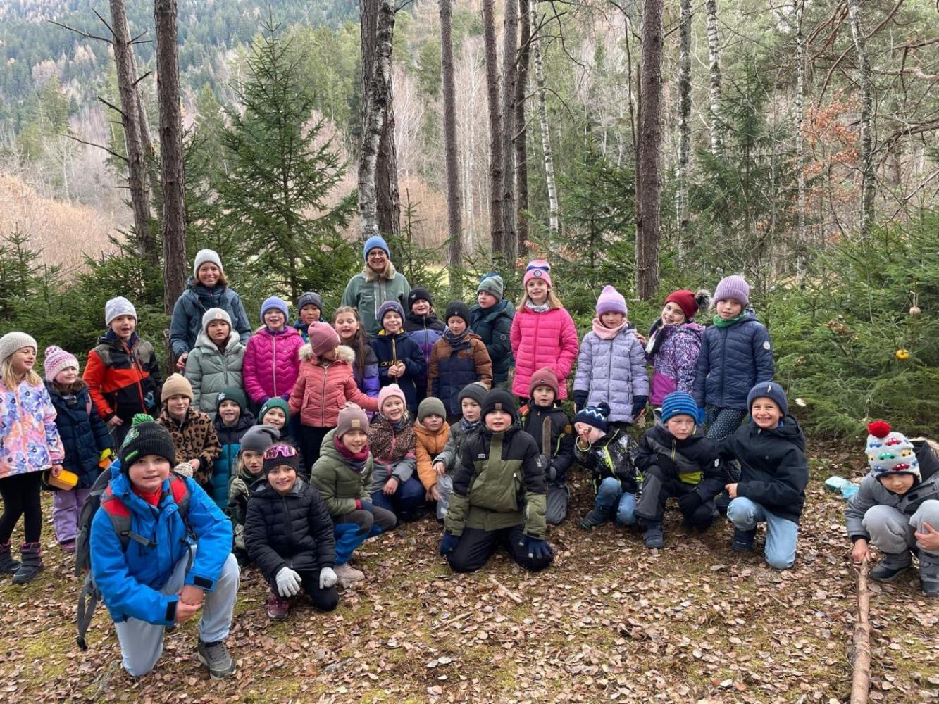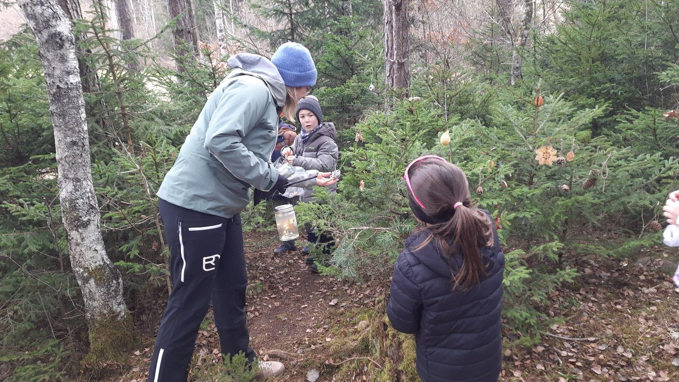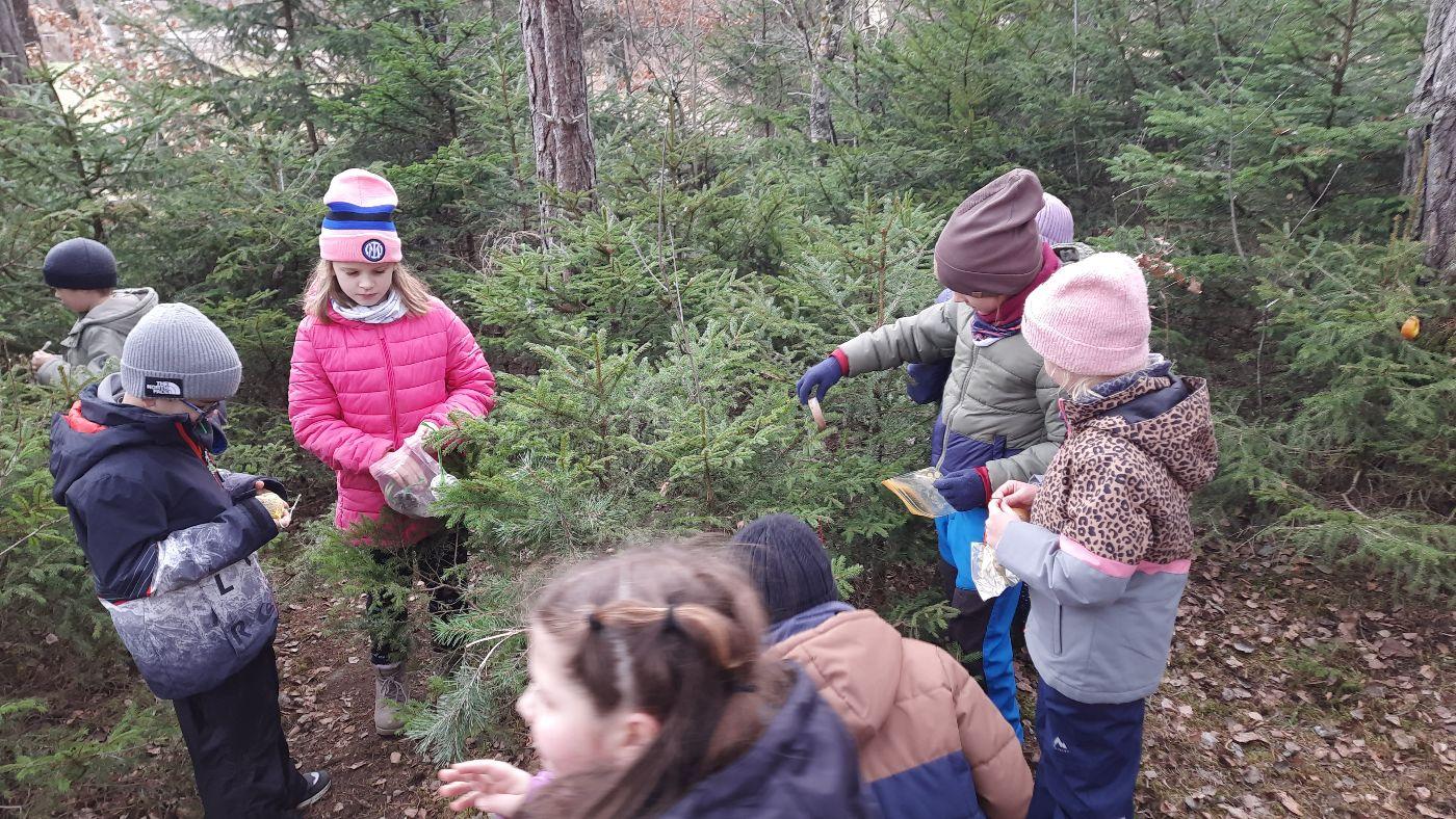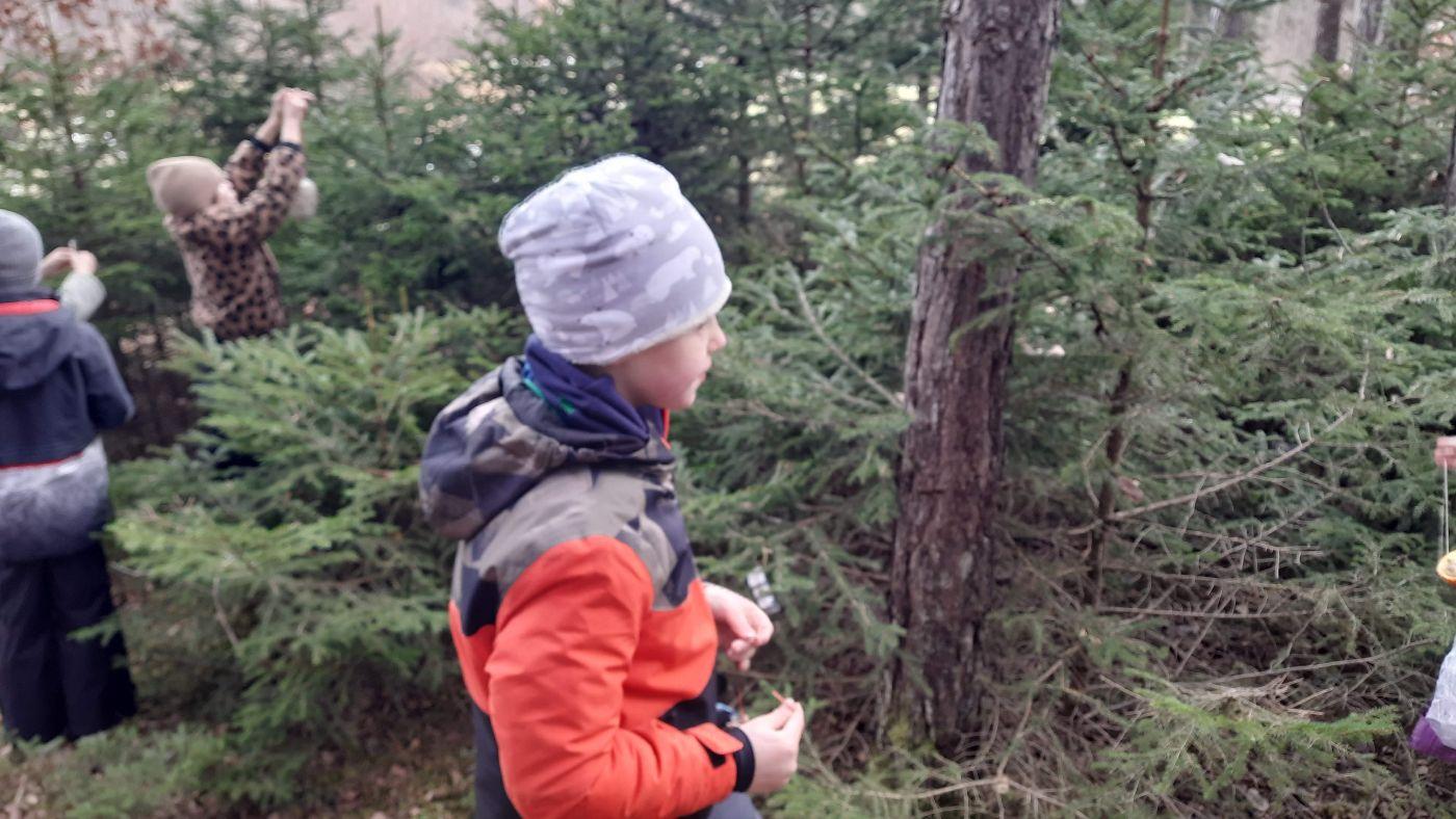 Die Kinder schmückten die Bäume liebevoll mit mitgebrachtem - teils selbstgebasteltem Weihnachtsschmuck aus Naturmaterialien. Auch für die Waldbewohner hatten viele Kinder Köstlichkeiten dabei.