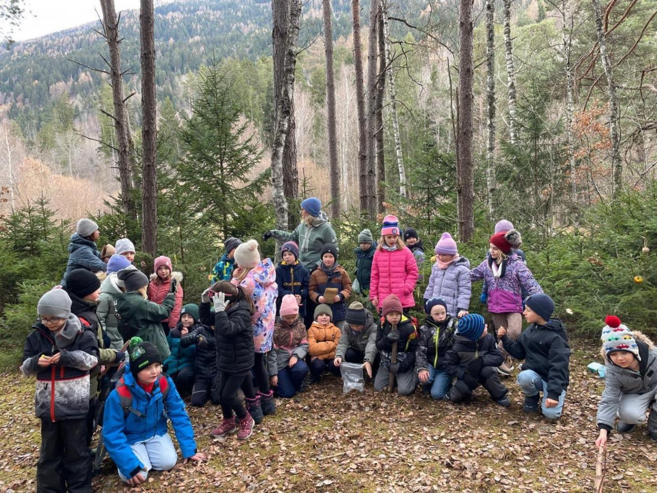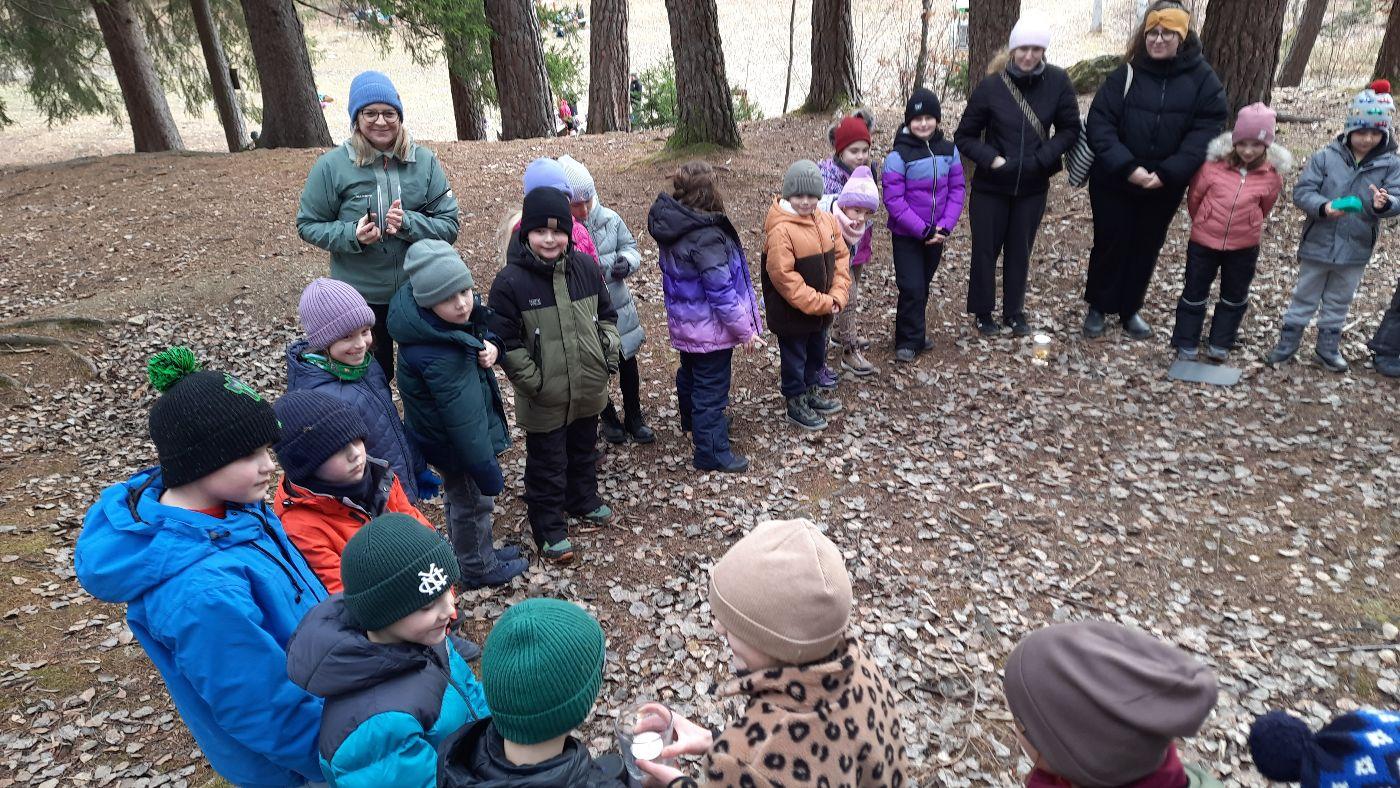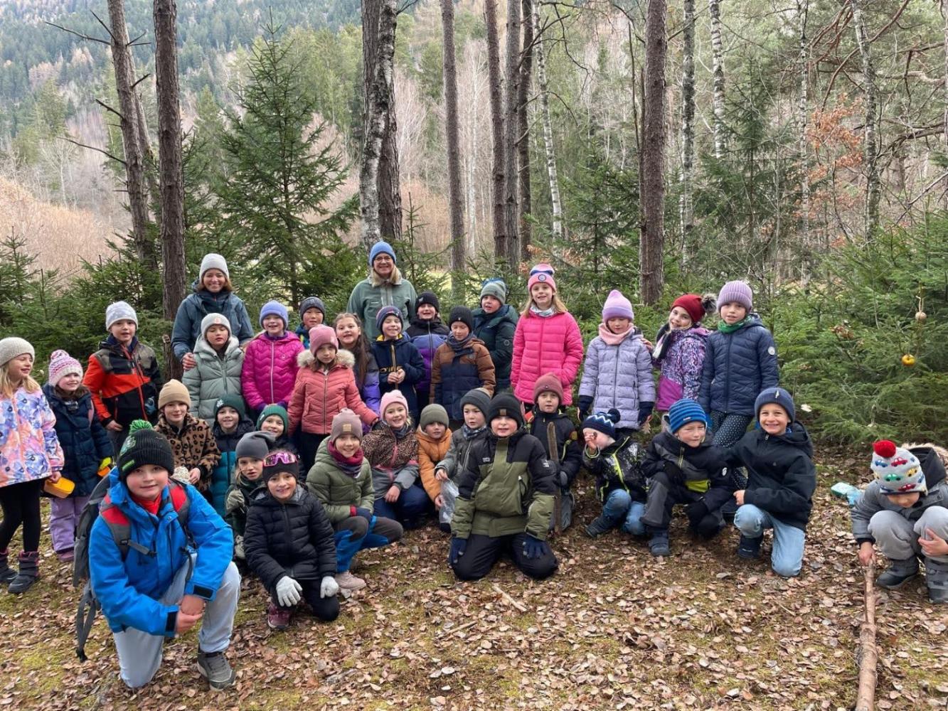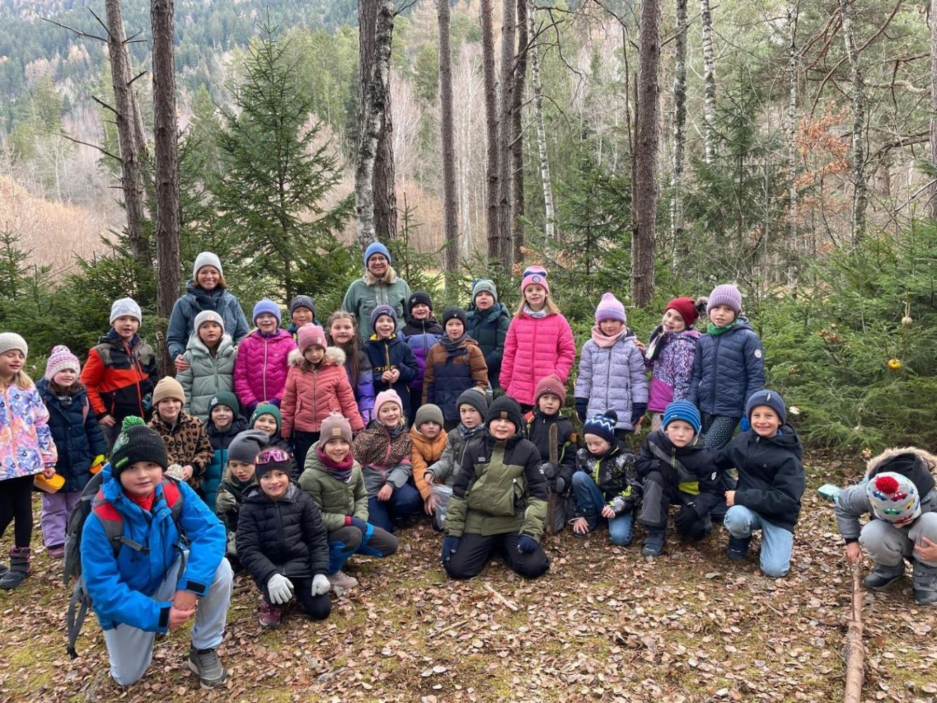 Die Kinder schmückten die Bäume liebevoll mit mitgebrachtem - teils selbstgebasteltem Weihnachtsschmuck aus Naturmaterialien. Auch für die Waldbewohner hatten viele Kinder Köstlichkeiten dabei.