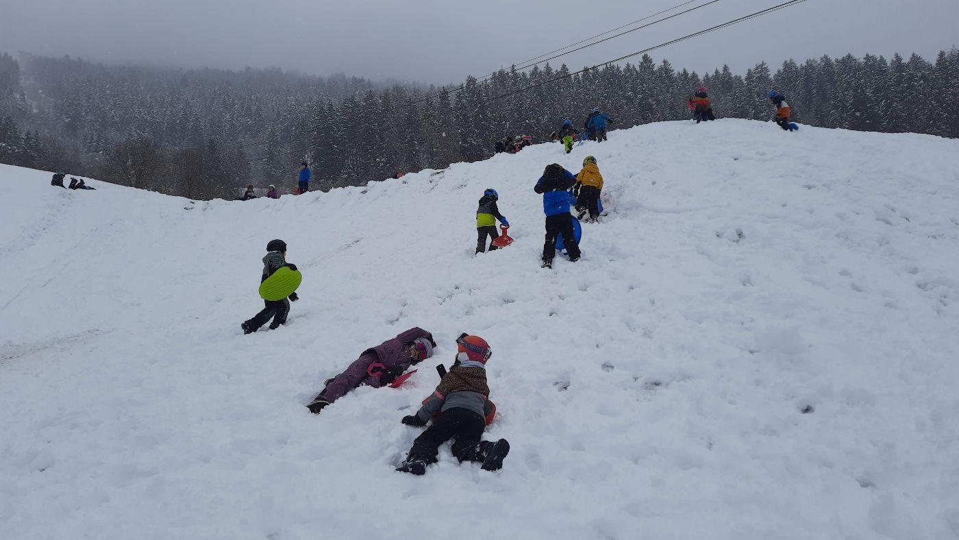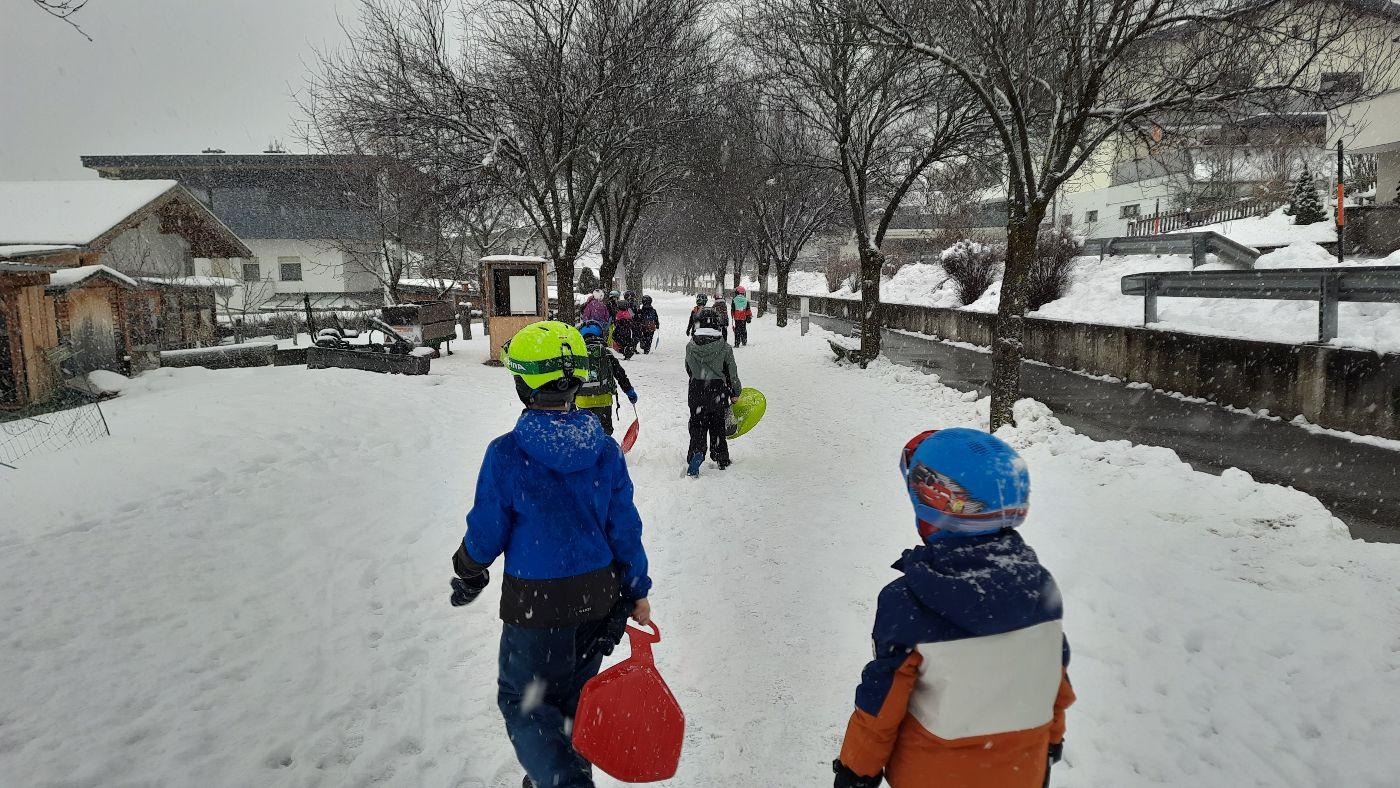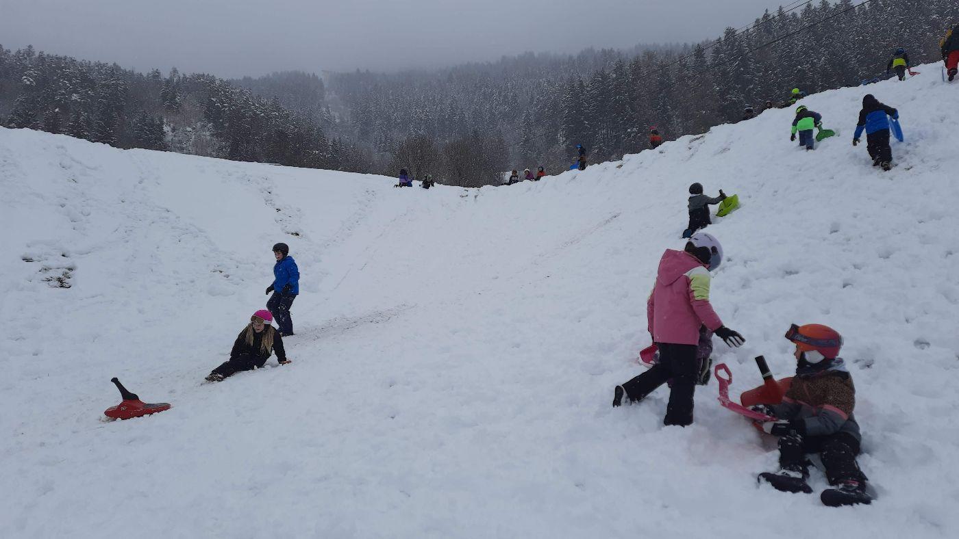 Wintersport: Spiel und Spaß im Schnee von Karin Dold-Egger 19. Februar 2026 2b Nachdem es endlich auch im Tal geschneit hat, nützten wir den Neuschnee, um uns in der Riefe mit den Rutschtellern so richtig auszupowern. Die Schneepracht hilt leider nur einige Tage - Regen und Föhn waren leider das Ende der weißen Pracht.