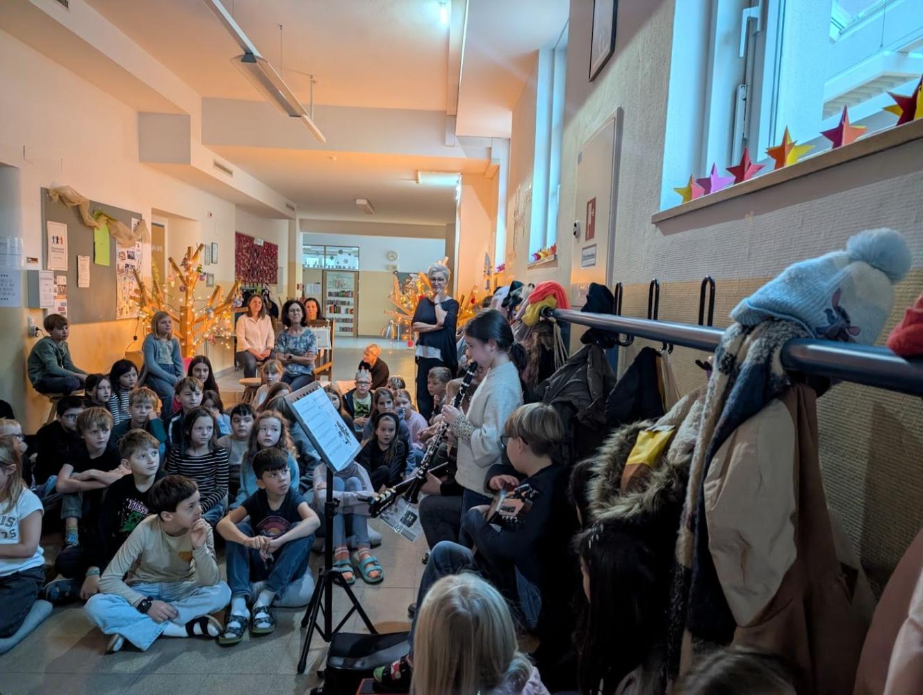 Wir sagen euch an den dritten Advent von Cäcilia Kollreider 15. Dezember 2025 Wieder war es soweit, wir versammelten uns am Gang zur gemeinsamen Adventfeier.Heute besuchten uns Tante Lisi und Tante Lisa vom ZAKIG um uns vorzulesen.